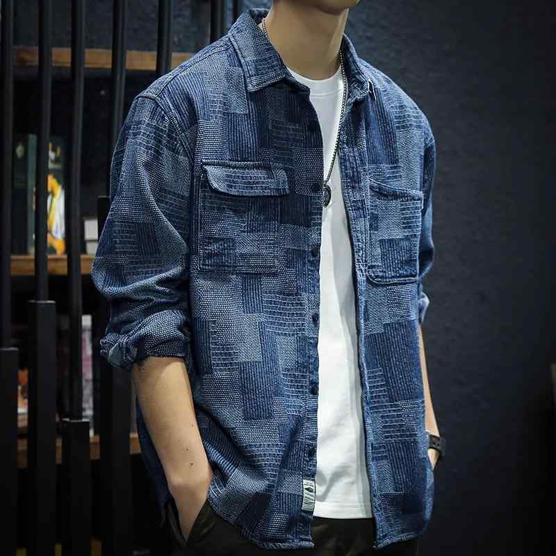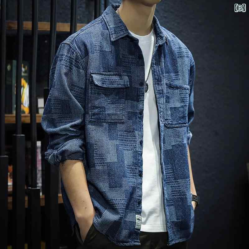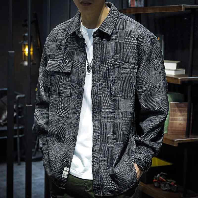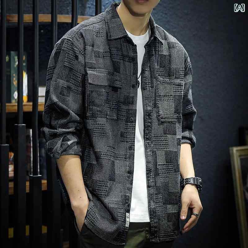 メンズ ファッション 春 夏 秋 冬 かっこいい オシャレ モテ 男性用 紳士服 服 韓国 シンプル 大人 デニムシャツ メンズ 春 秋 綿 ゆったり 大きいサイズ チェック柄 ジャガード 長袖 シャ