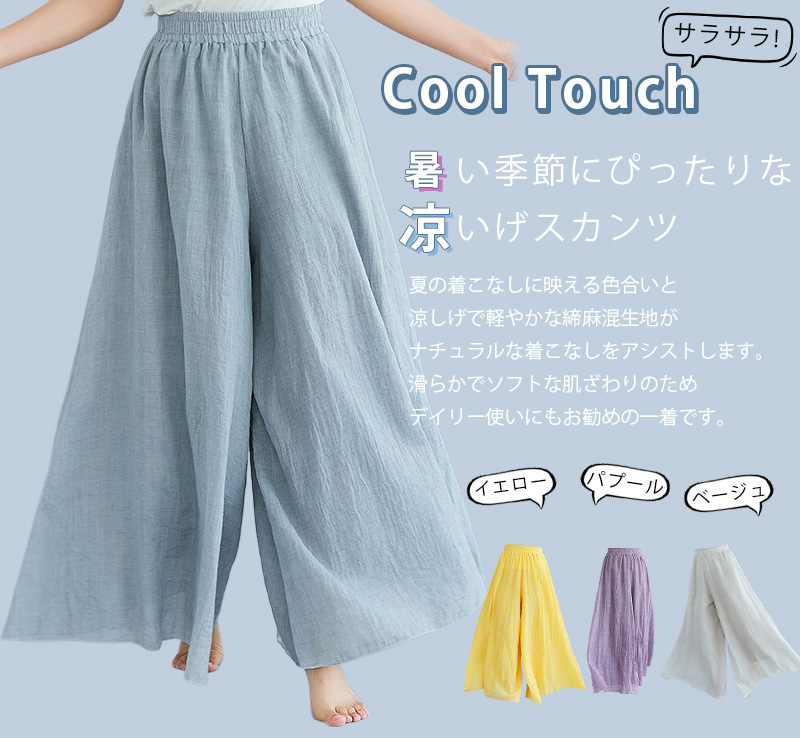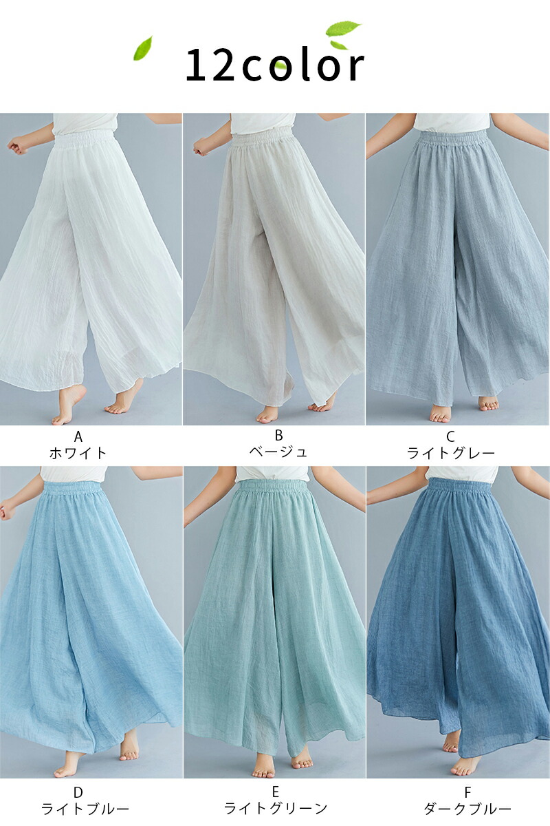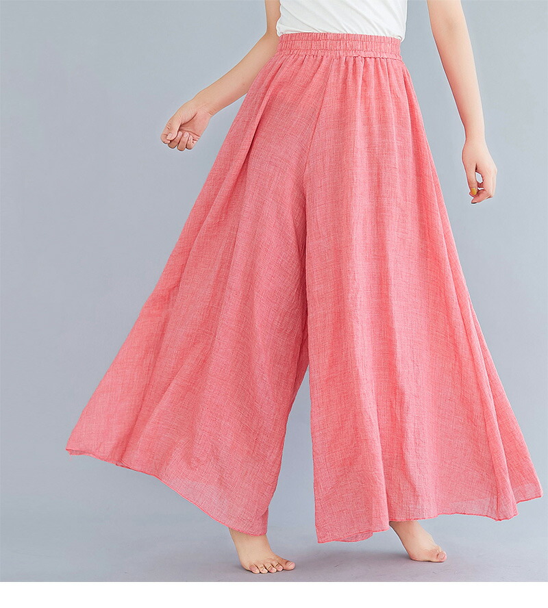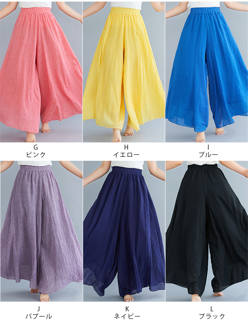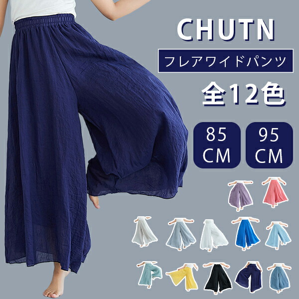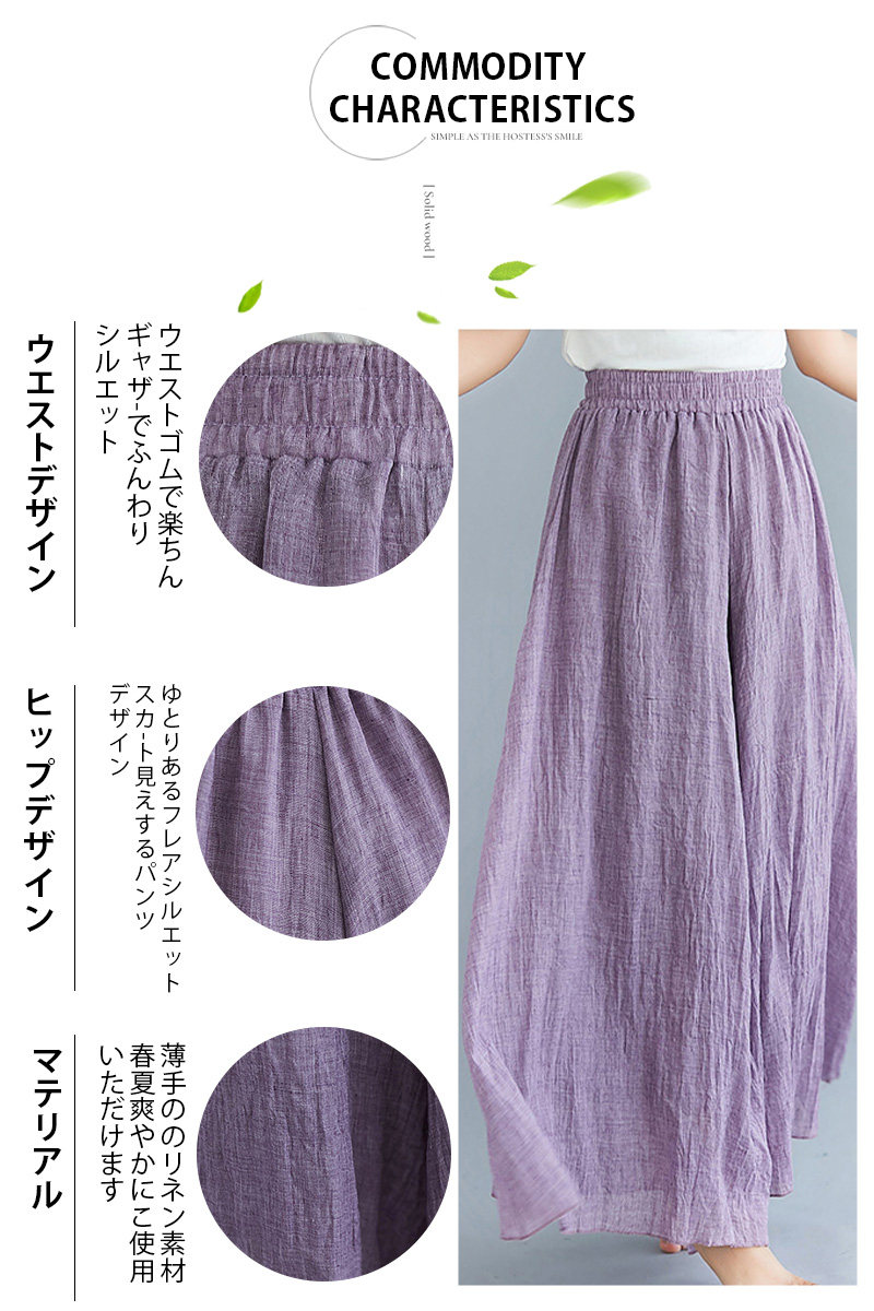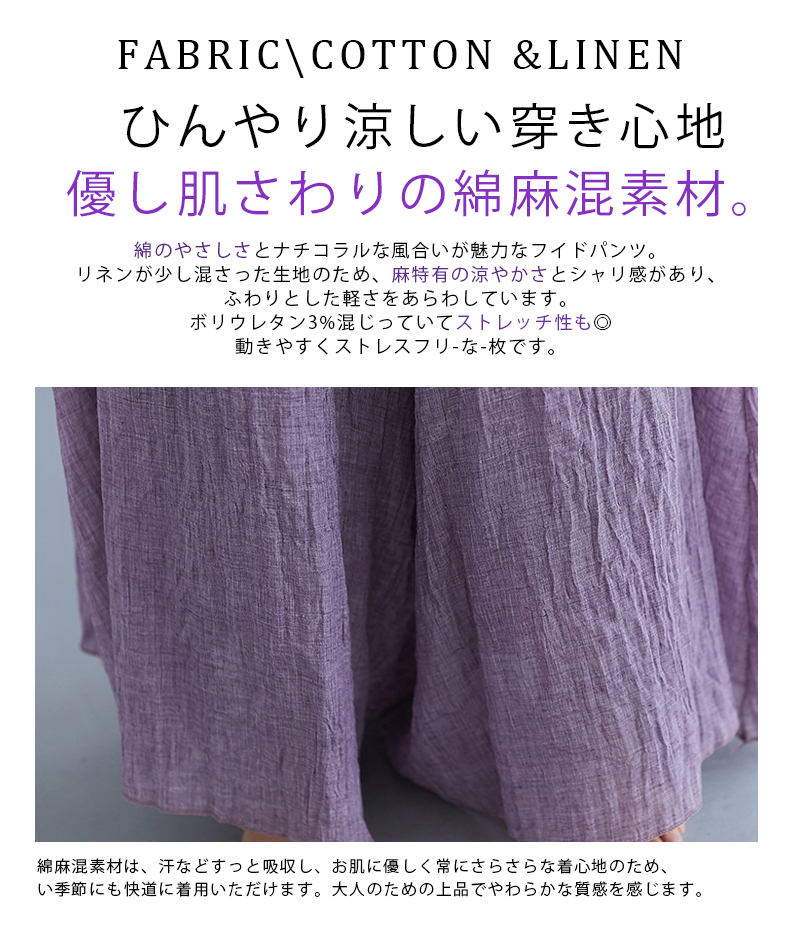 フレアパンツ 綿麻混 マキシ ロング