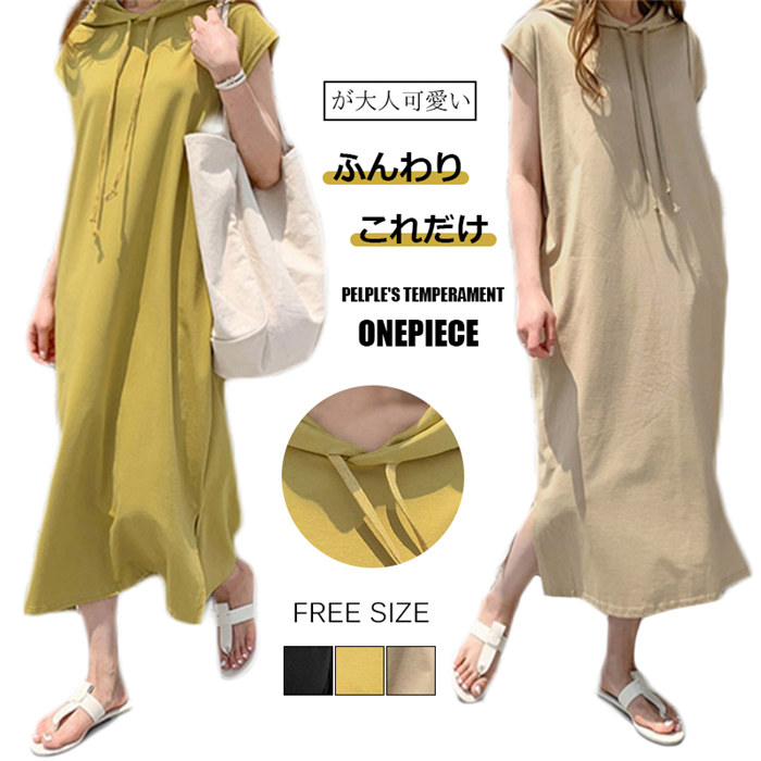 ロングワンピース レディース 夏 ワンピース 無地 ストレートワンピース ワンピ 夏用 aラインワンピース マタニティ 大きいサイズ ゆったり 体型カバー パーカーワンピース ニットワンピース ニット