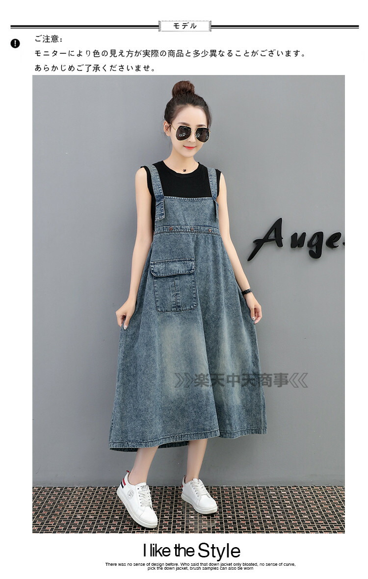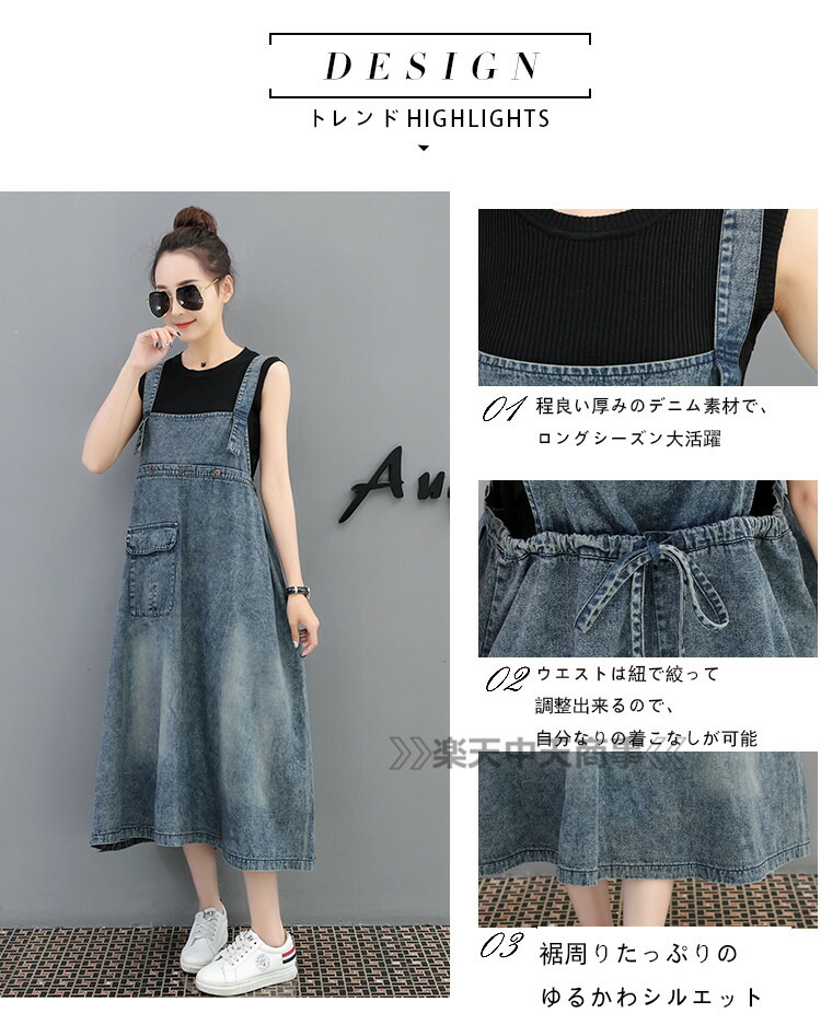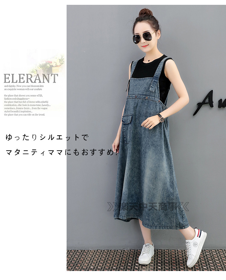 サロペット デニムスカート レディース体型カバースカート サロペット ミドル丈 デニムワンピース デニム オールインワン マキシ丈 デニムスカート デニムジャンパースカート