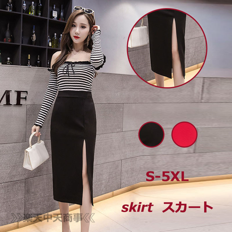 【chuten】スカート レディース サイドスリット ミモレ丈 タイトスカート 無地 シンブル オシャレ セクシー ミモレ丈タイトスカート 着回し カジュアル ミモレ丈スカート エレガント フォーマル 通勤 OL 就活 二次会 新作 全2色 S-XXXXXL