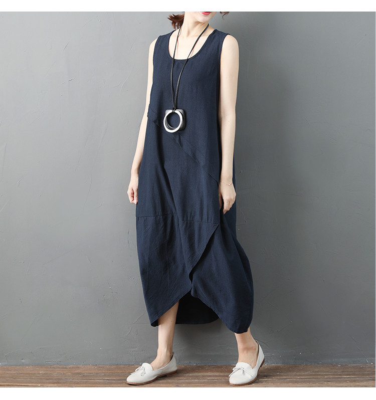 【3点送料無料】ノースリーブ 綿麻ワンピース リゾートワンピ リゾート ワンピース レディース 新作 Aラインワンピ マキシワンピース コットン リネン ロングワンピース 夏 綿麻 カジュアル 森ガール ワンピース 無地 体型カバー ナチュラル