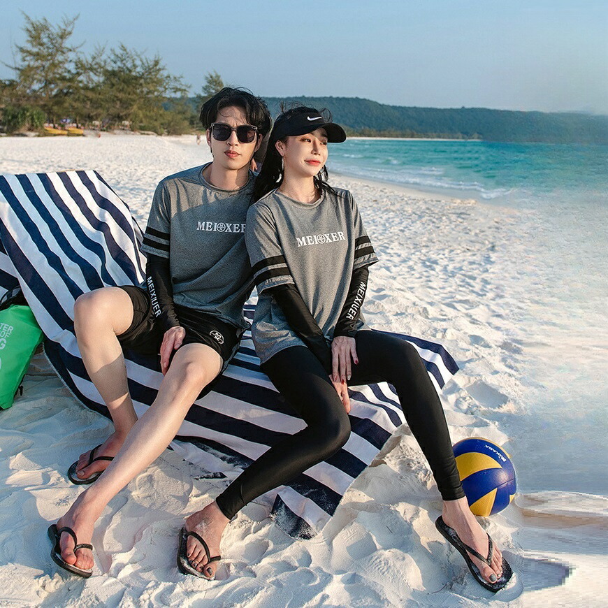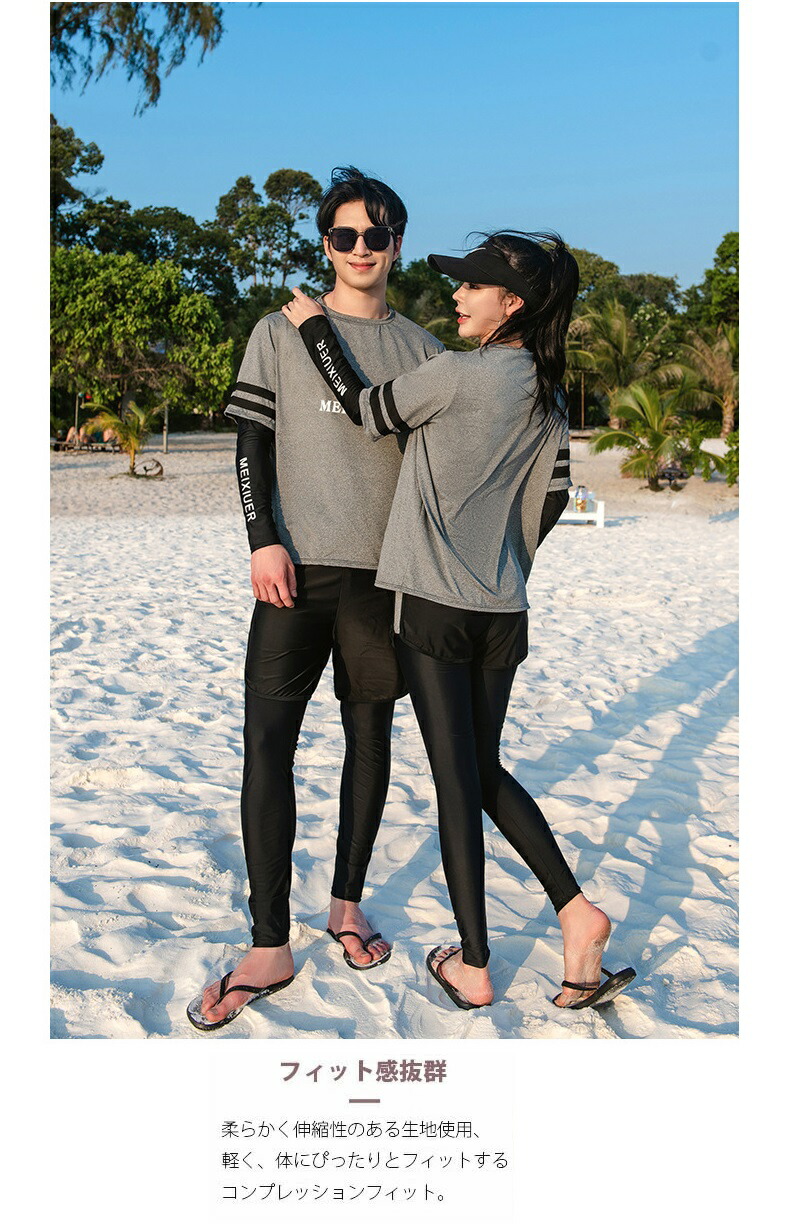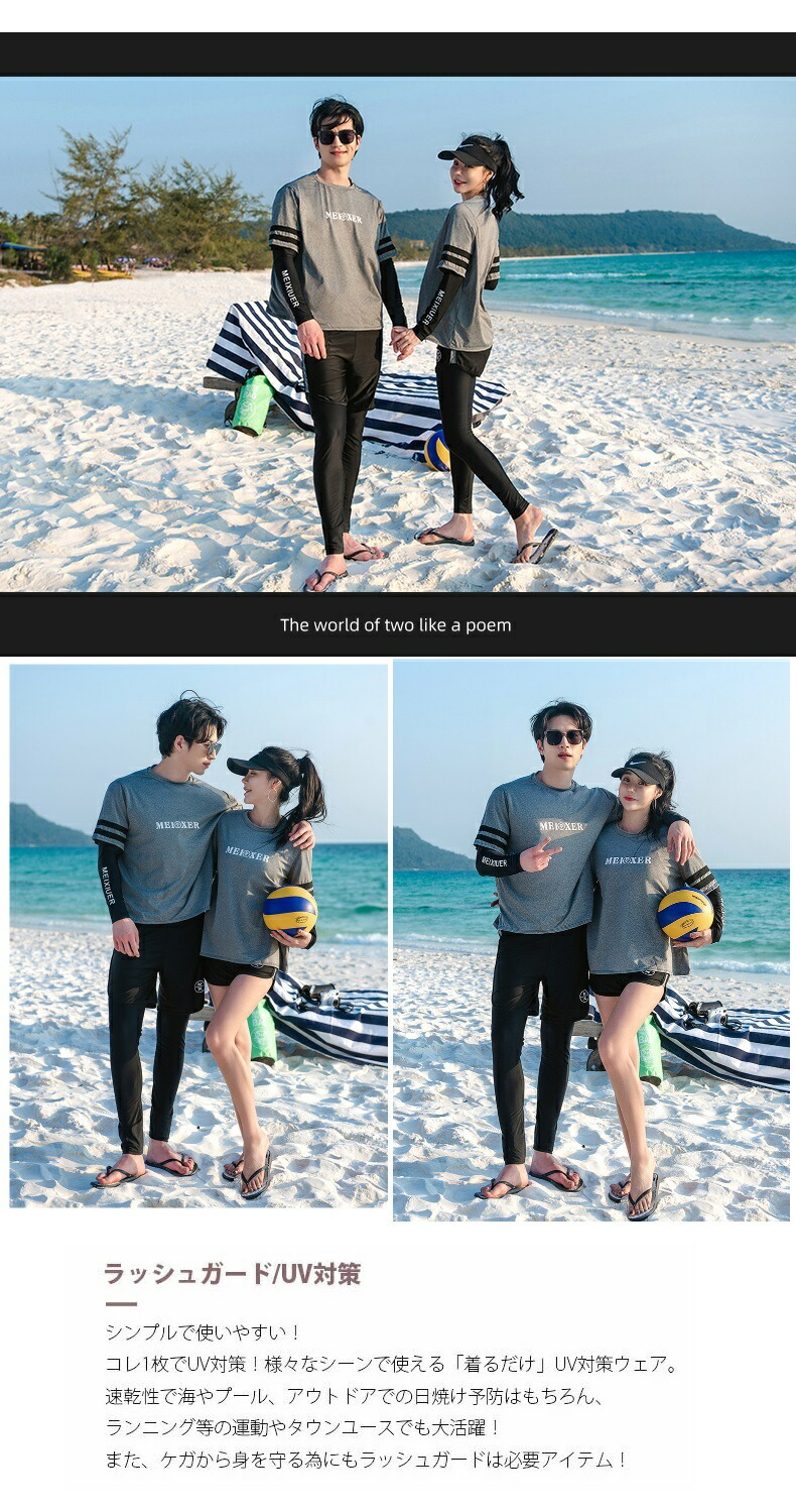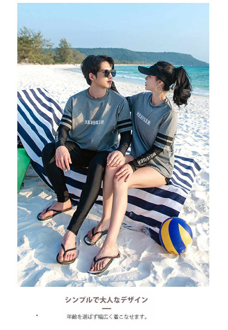 ★おしゃれでかわいいラッシュガードペア水着。恋人二人で一緒に着て、ラブラブ感が溢れている