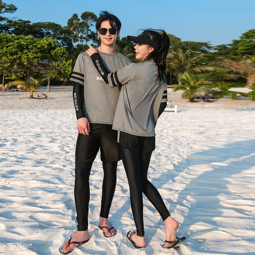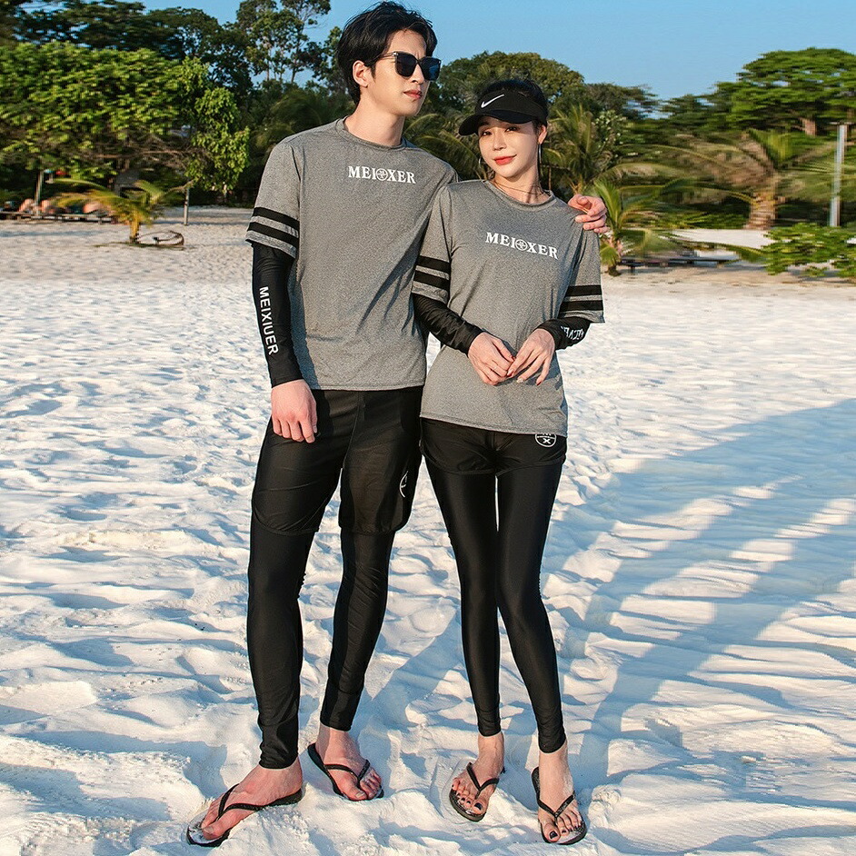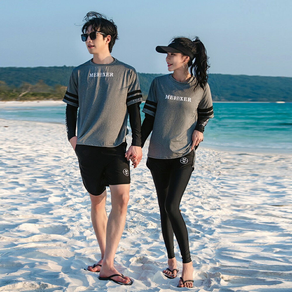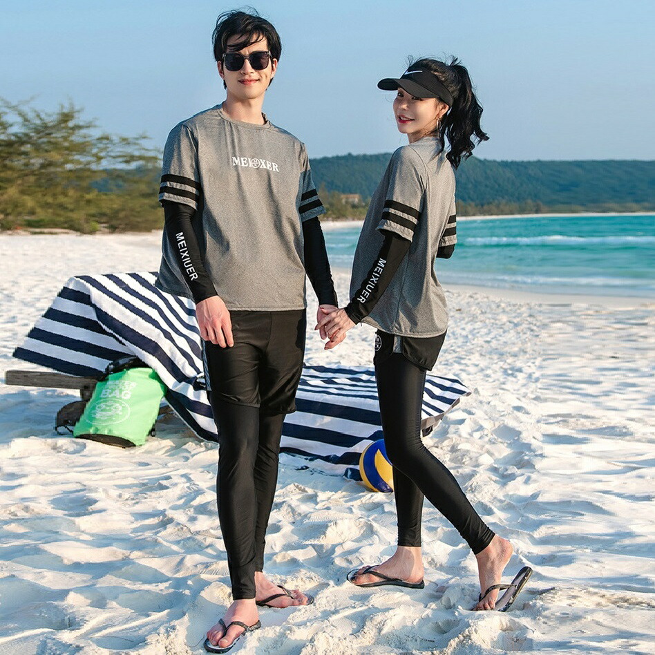★おしゃれでかわいいラッシュガードペア水着。恋人二人で一緒に着て、ラブラブ感が溢れている