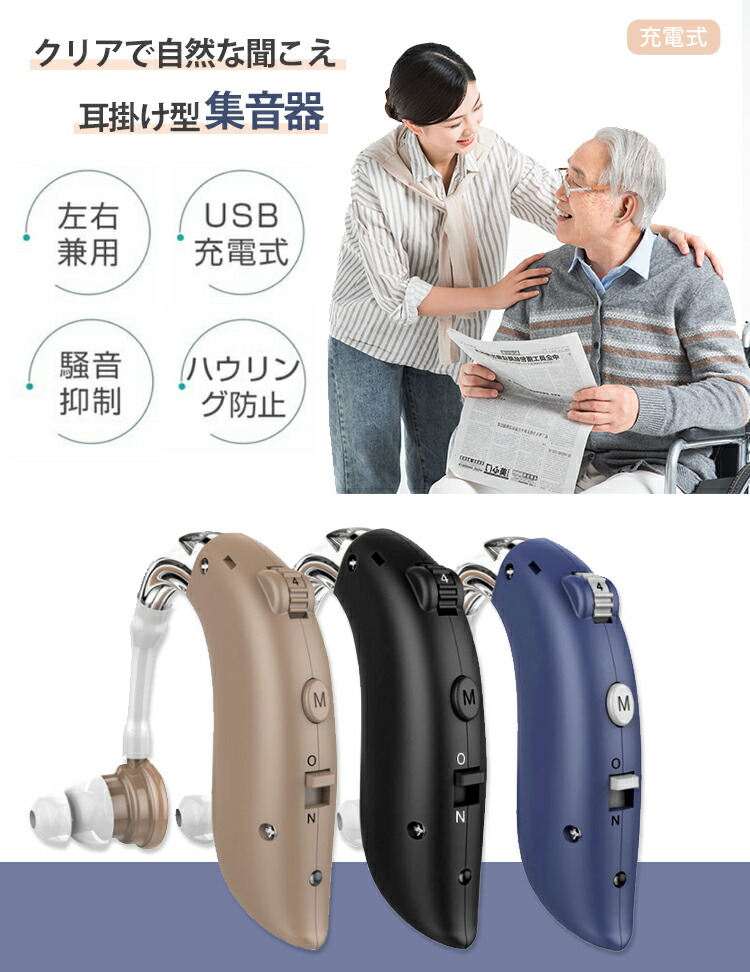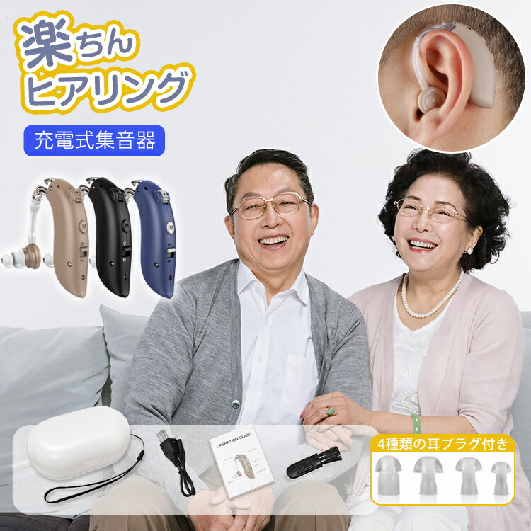 耳掛け型集音器 日本語取扱説明書 簡単操作 収納ケース付き 耳かけ 集音器 耳掛けタイプ 4段階のボリューム調節 シリコーン らくちん おしゃれ 両耳 片耳 兼用 介護 最軽量 お年寄り