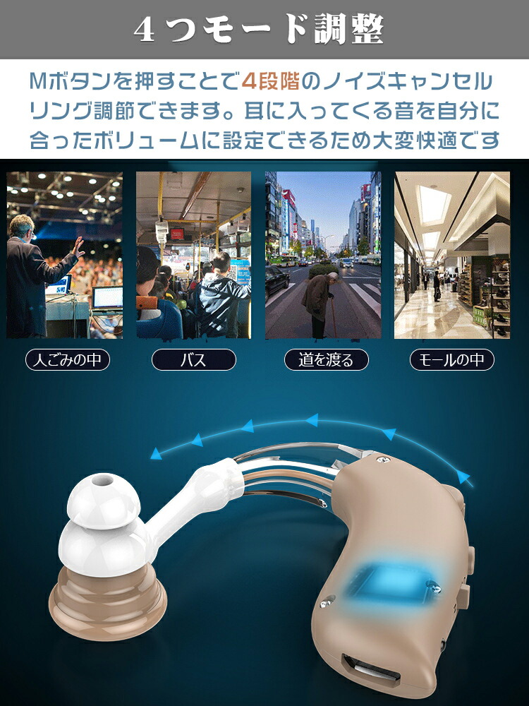 ◆ 【4つモード調整】4種類の騒音抑制モードの切り替えで聞き取りやすい音域を選べ快適に過ごせます。周りの騒音が大きくて会話が聞き取りにくい場合や、低域の音が気になる時などはモードを切り替わってお使いください。