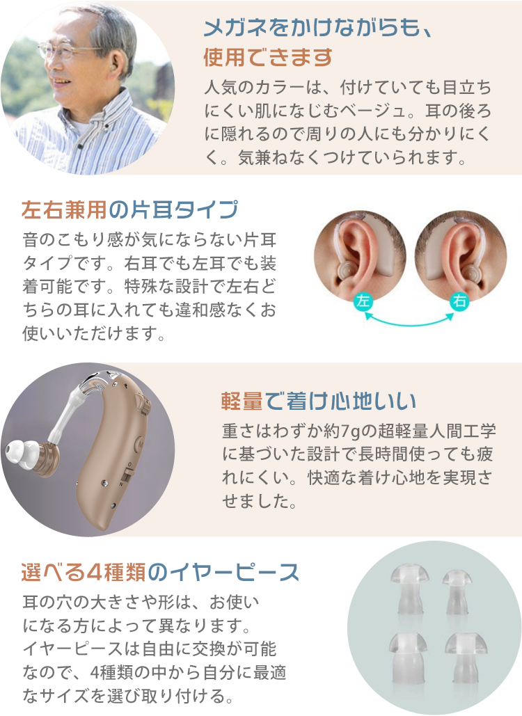 ● 使用者の聞こえの度合いによって効果が表れにくい場合もございます。あらかじめご了承ください。