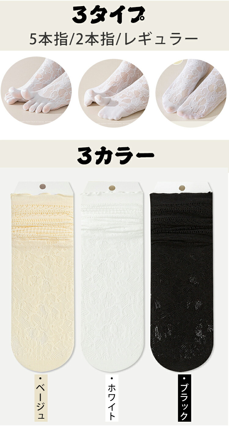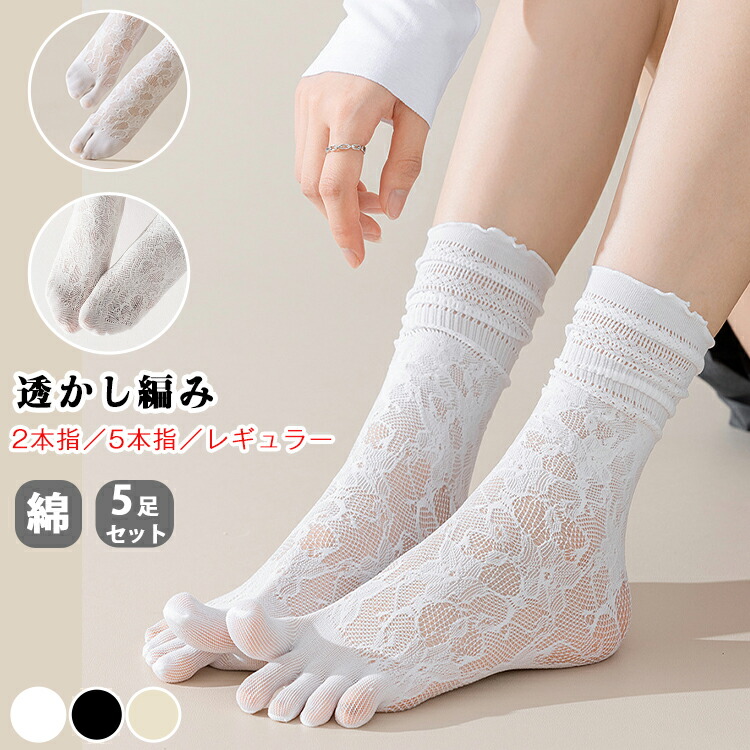 5足組 靴下 透かし雕り レースソック