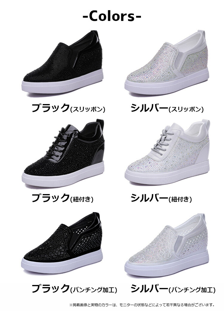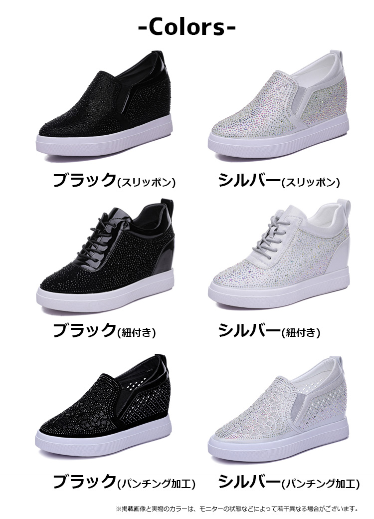 カラー: ブラック(スリッポン) シルバー(スリッポン) ブラック(紐付き) シルバー(紐付き) ブラック(パンチング加工) シルバー(パンチング加工)