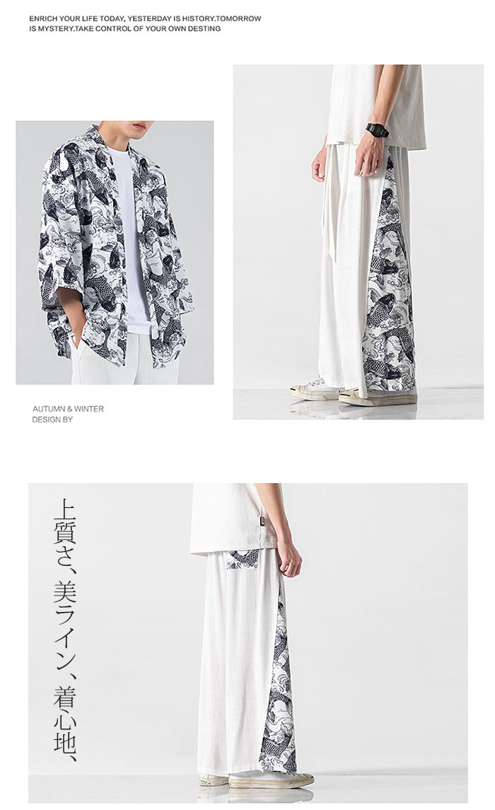 素材 リネン。麻カラー展開 【黒うちわ柄】【白うちわ柄】【白鶴】【ブルー鶴】【ネイビー鶴】【黒鶴】【黒鯉柄】【白鯉柄】【白イカ柄】【黒イカ柄】サイズ展開 【M】【L】【XL】【2XL】【3XL】【4XL】【5XL】生産国 中国ガイド ※大量生産による生産過程におきまして、若干の個体差(1cmから2cm)が生じる場合がございます。