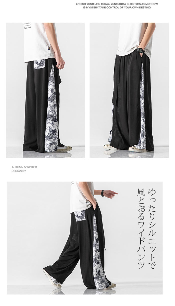ワイドパンツ メンズ サルエル リネンパンツ 綿 麻 パンツ 大きいサイズ タイパン バギーパンツ 無地 ロング丈 ワイドパンツ ボトムス リラクス 薄手 ルームウエア ハロンパンツ カジュアル ゆったりシルエット リネン麻 涼しい 全10色 M~5XL 送料無料