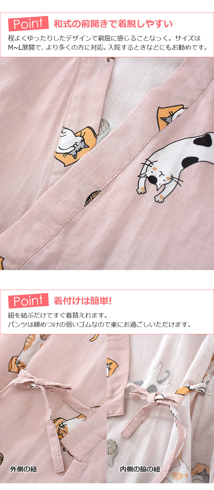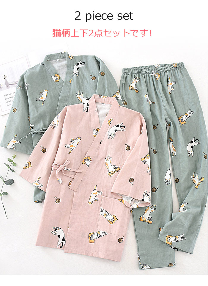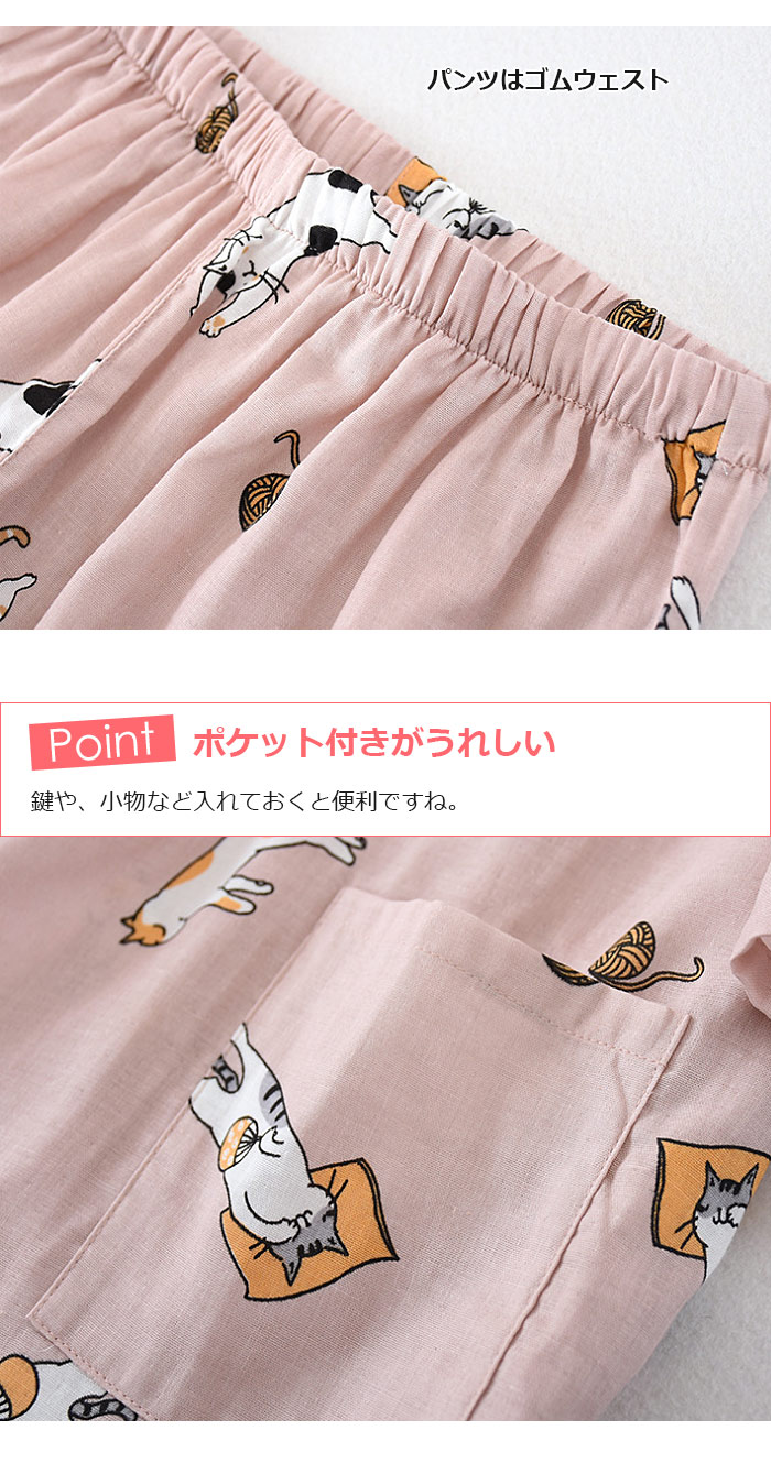 猫 柄 ネコ柄 パジャマ 夏涼しいパジ