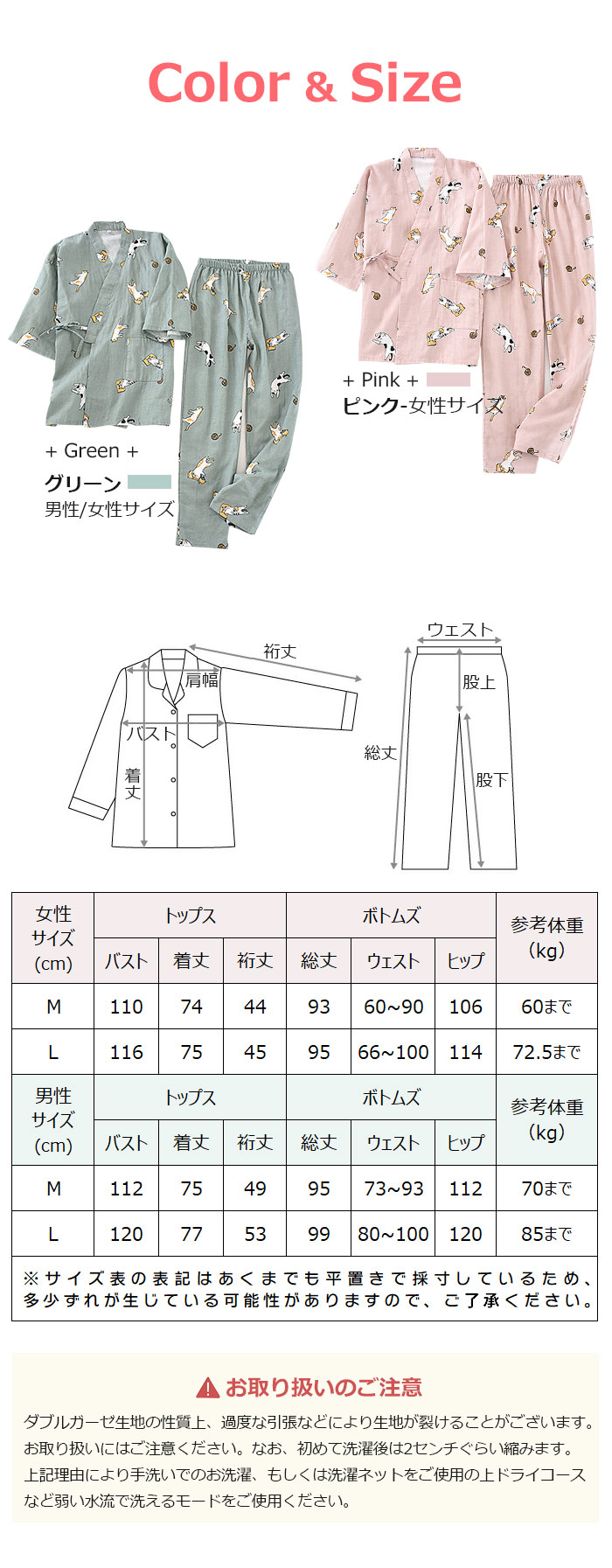 色: 女性ピンク 女性グリーン 男性グリーン