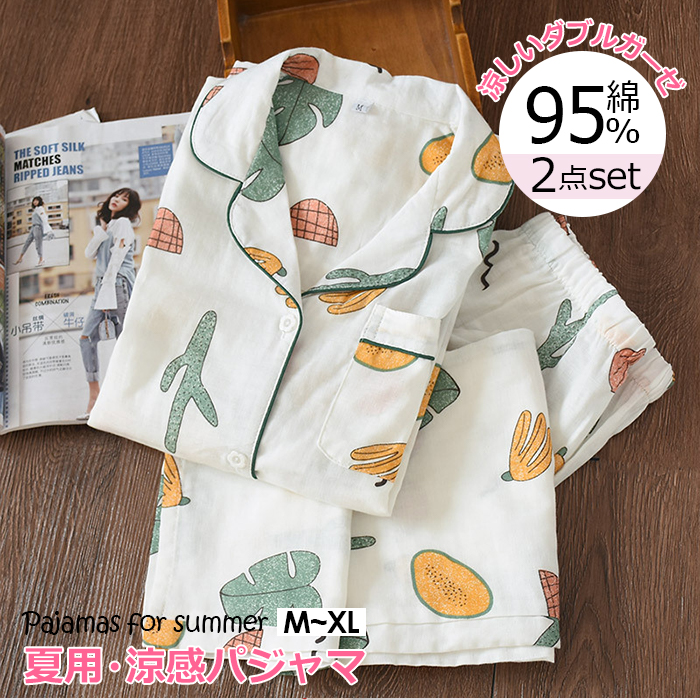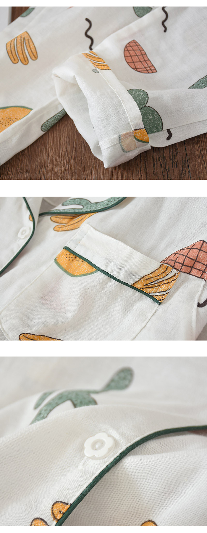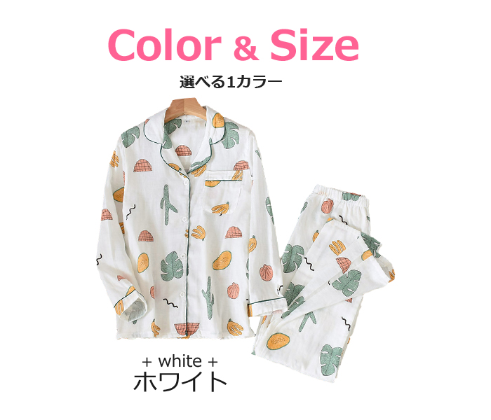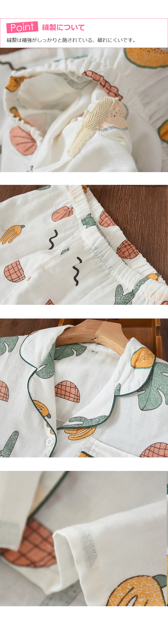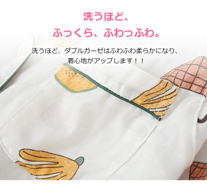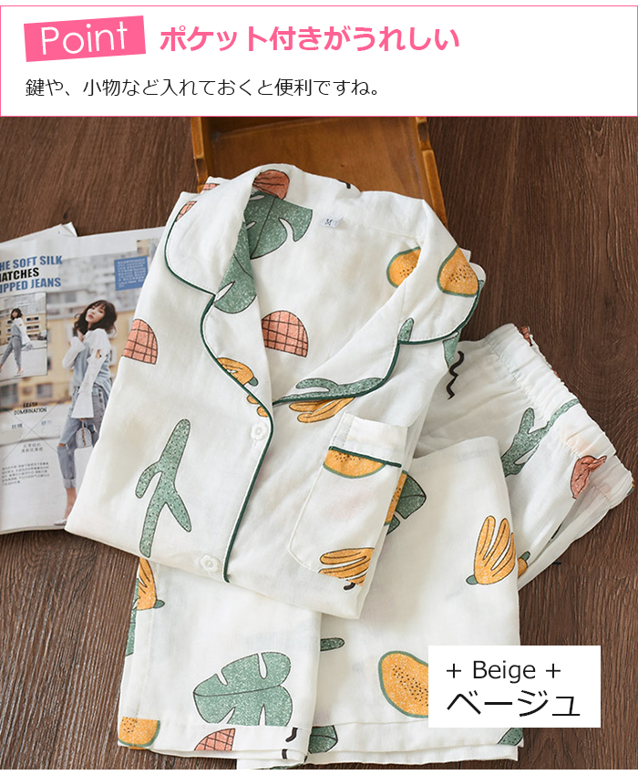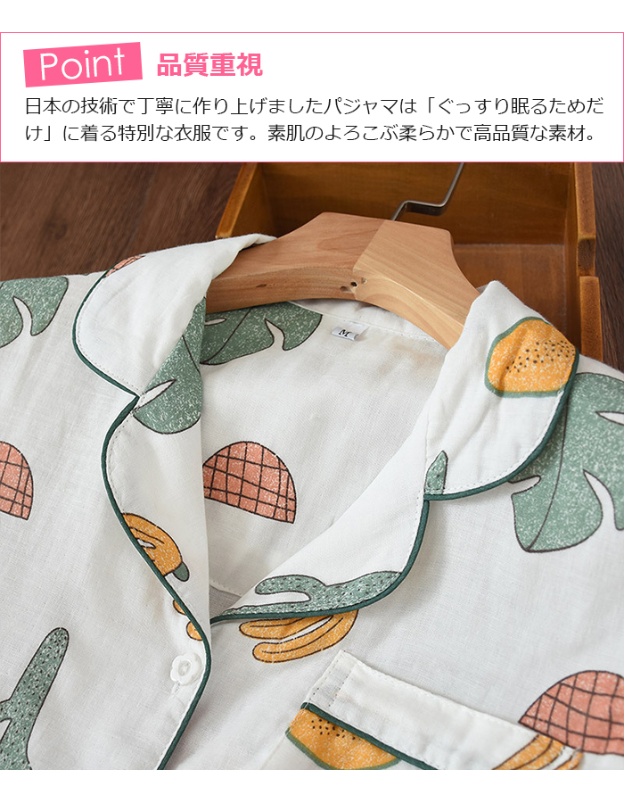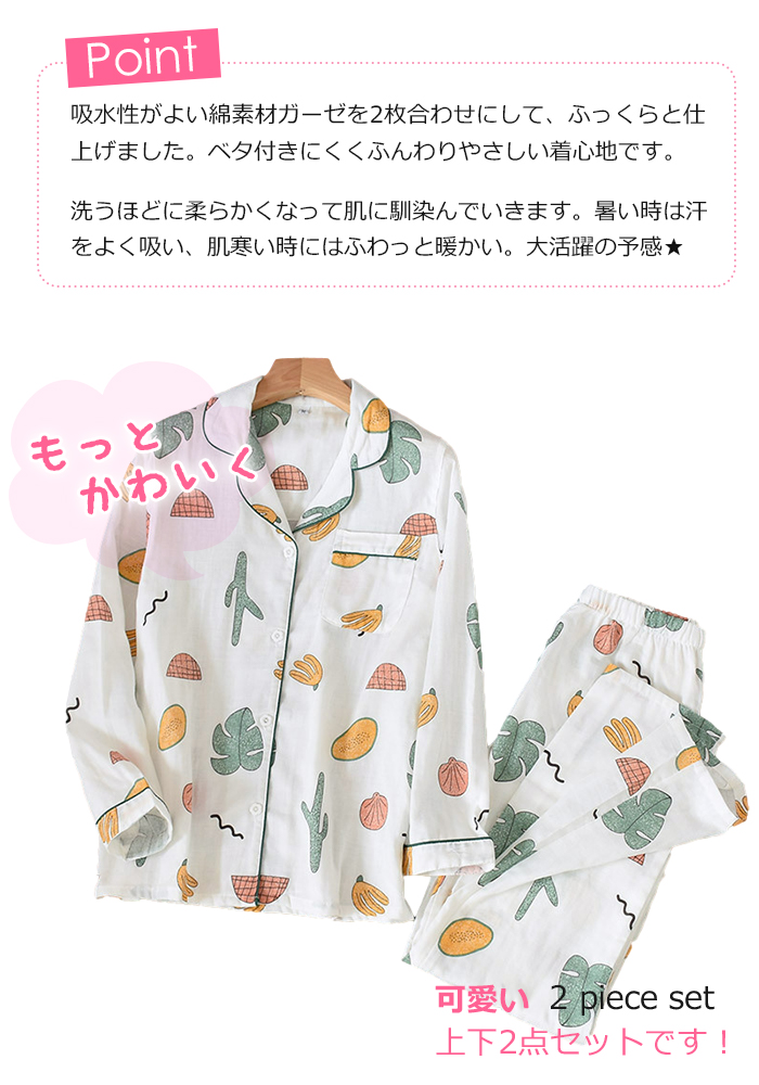 ガーゼ パジャマ 綿100% 春 夏 部屋着 セットアップ 前開き ボタン付き 長袖 ふわっと 可愛い 和風 かわいい 記念日 リラックス 涼しい 柔らかい 柔軟 ダブル 2重ガーゼ