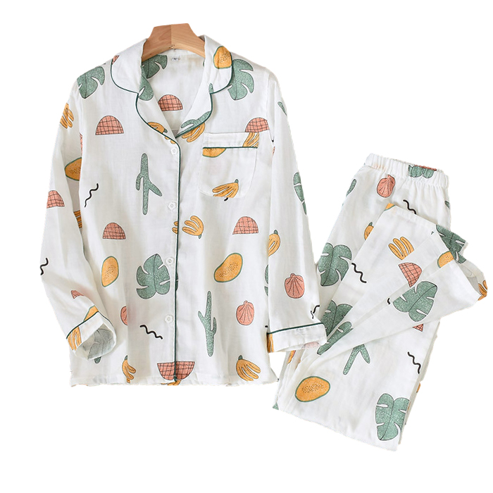 ガーゼ パジャマ レディース 部屋着 ルームウエア 綿100% 寝巻き 二重ガーゼ 長袖 大人用 入院 産後 ダブルガーゼ セットアップ 春 夏 薄手 ロングパンツ 可愛い 和風 韓国 植物柄/M/L/XL 敬老の日