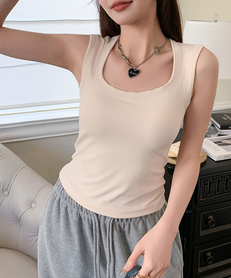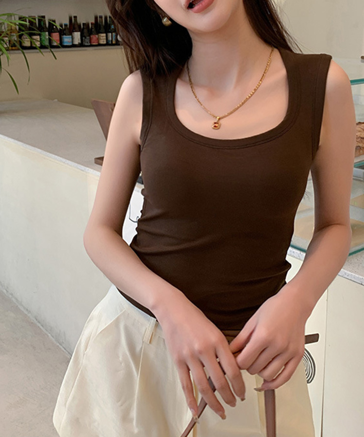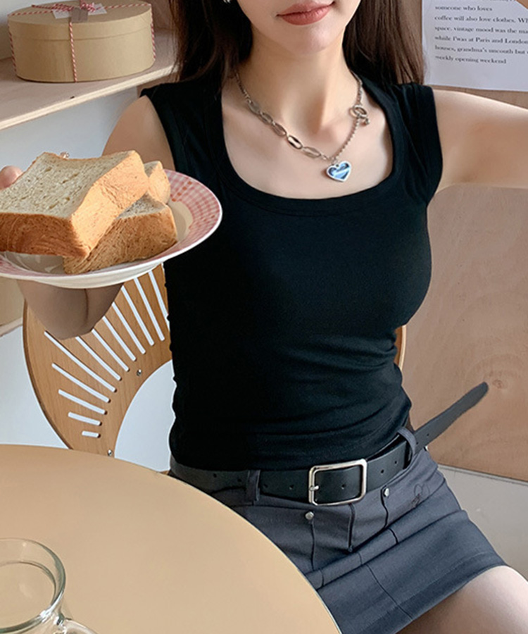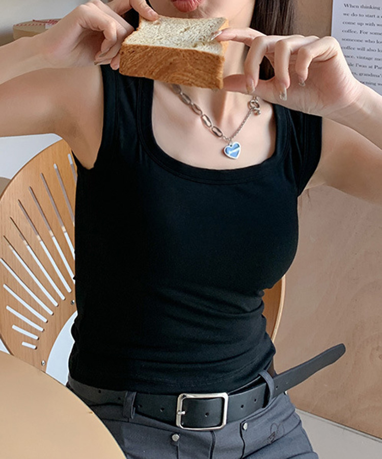 タンクトップレディースTシャツノースリーブUネックロゴプリント