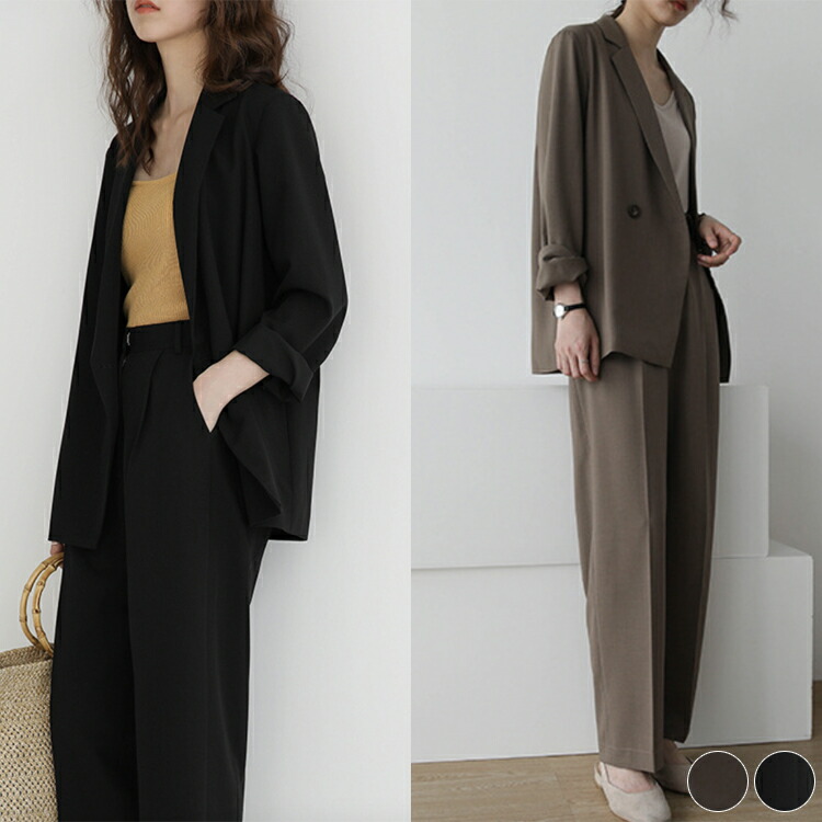 パンツスーツ レディース スーツ ダブルボタン おしゃれ オフィス エレガント OL 通勤 ジャケット ワイドパンツ 入学式 卒業式 かっこいい 韓国