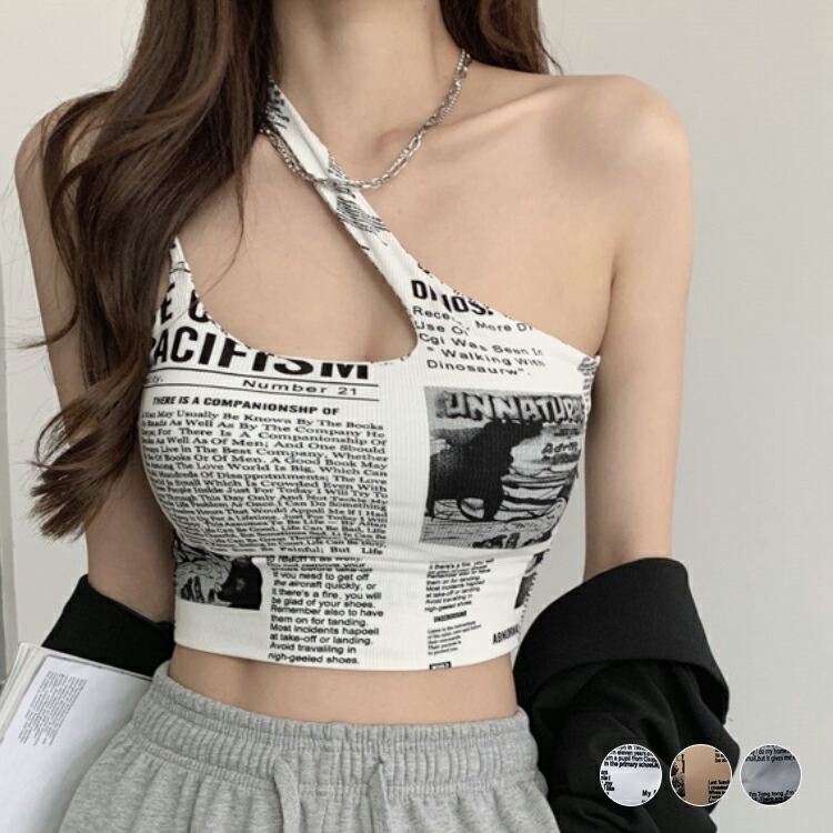 タンクトップレディースTシャツノースリーブUネックロゴプリント