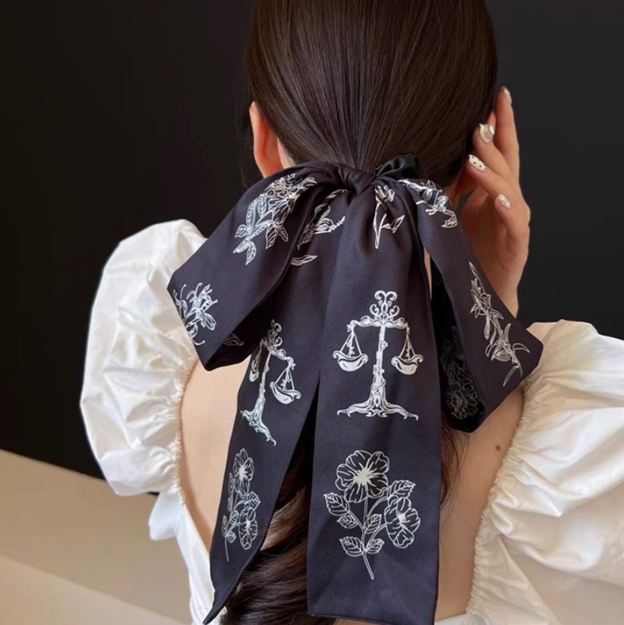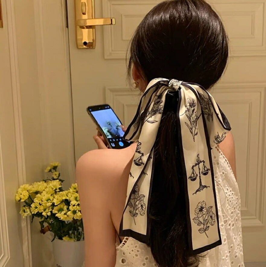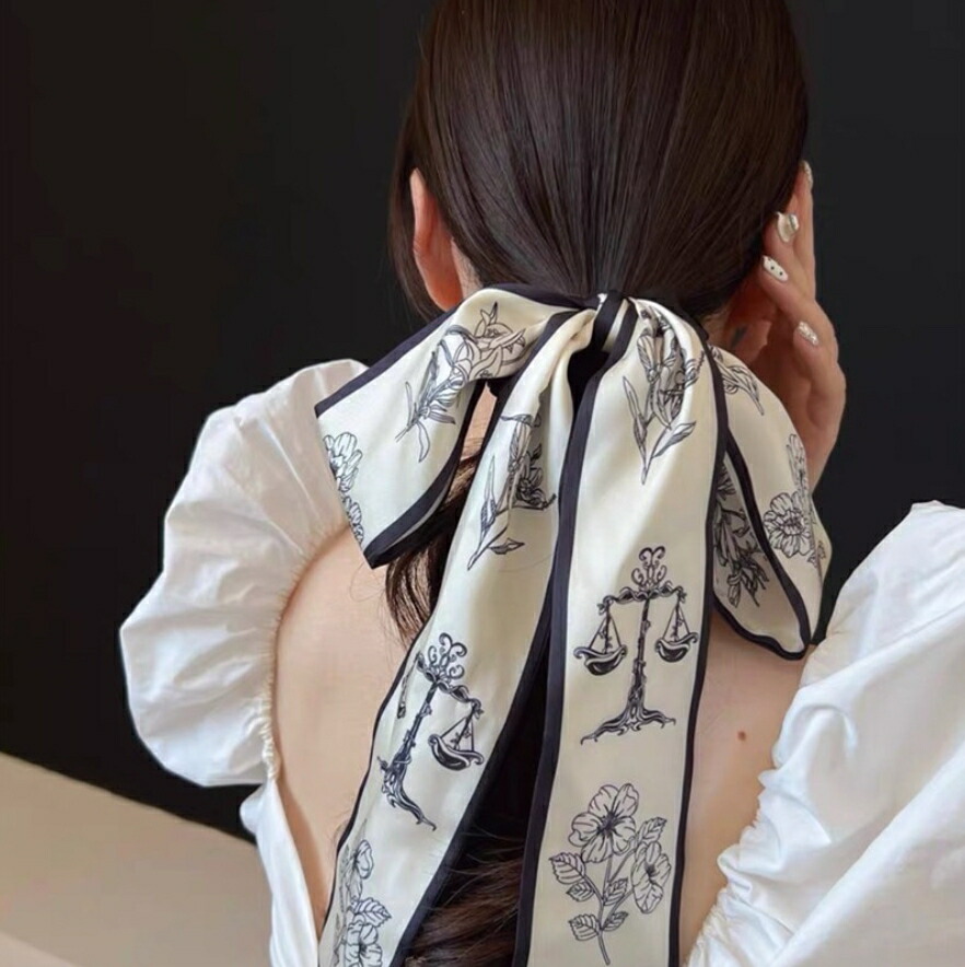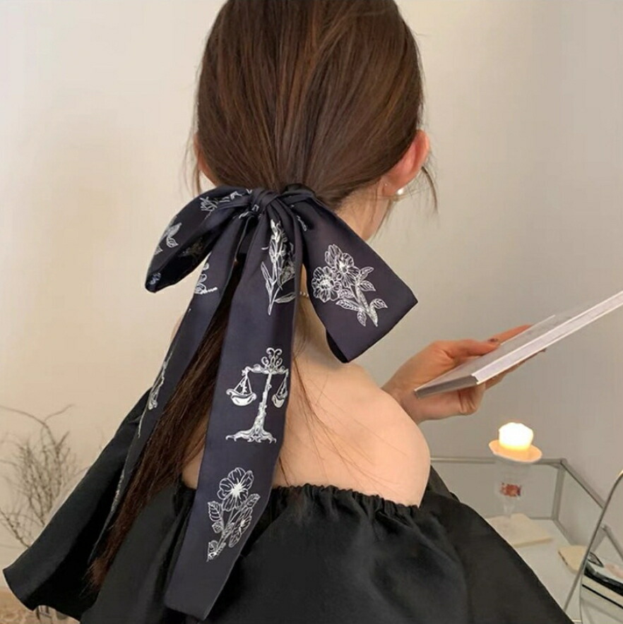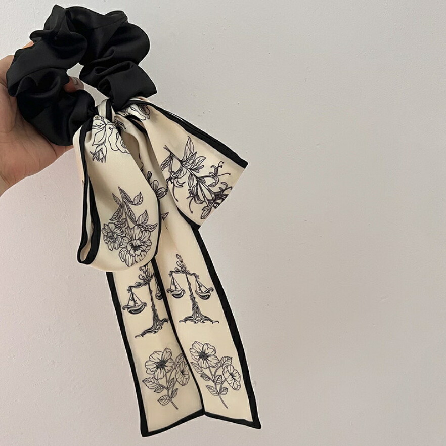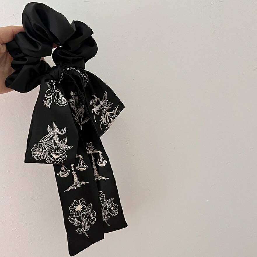 ロングリボンシュシュ ヘアゴム 花柄シ