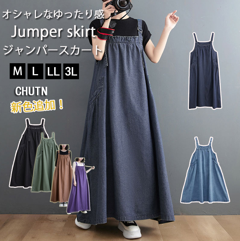 ジャンパースカート デニムワンピース レディース デニム サロペットスカート キャミワンピース 重ね着 ゆったり キャミワンピ ロングワンピース 着痩せ