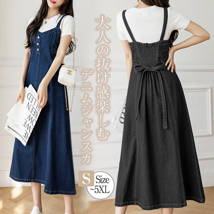 デニム サロペット スカート レディース ジャンパースカート ワンピース 春 夏 秋 冬 膝丈 Aライン 大きいサイズ 大人 カジュアル ガーリー