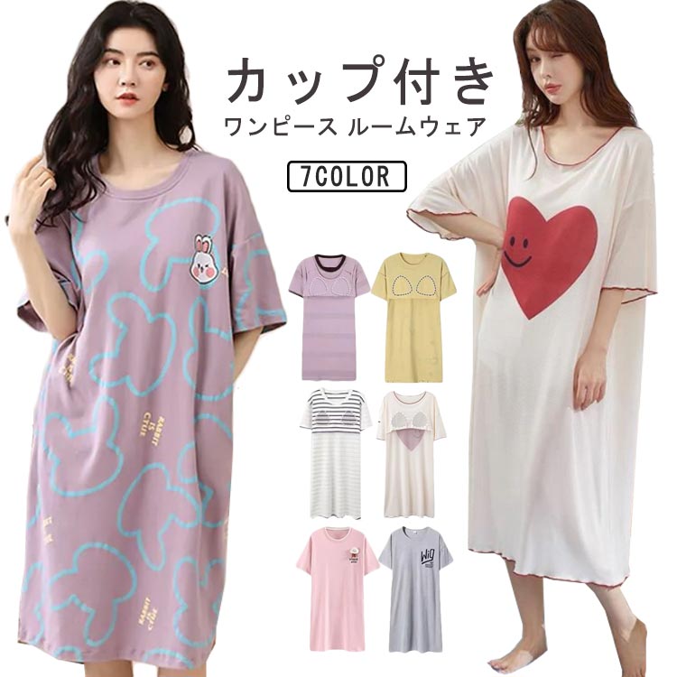 半袖 レディース ミモレワンピース パジャマ ロング丈 部屋着 カップ付きワンピース ルームウェアインナー 下着 ナイトウェア レディース ナイトウェア ルームウェア ルームウェア ワンピース