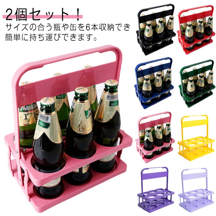 2個セット ボトルキャリアー 手提げ 缶 折りたたみ ドリンクホルダー キャリア 6本入 バー用 ペットボトル 瓶 ラックボトルケージ ワインボトル ビール瓶 コンパクト 収納便利 パーティー アウト