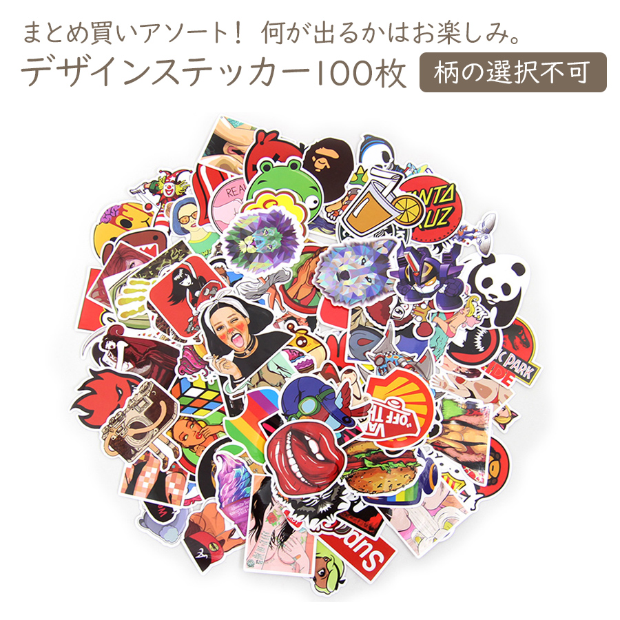 デザインステッカー 100枚セット まとめ買い アソート デザイン指定不可 シール 雑貨 玩具 ホビー おもちゃ マーク 大人 キャラクター ロゴ セット買い ギフト プレゼント