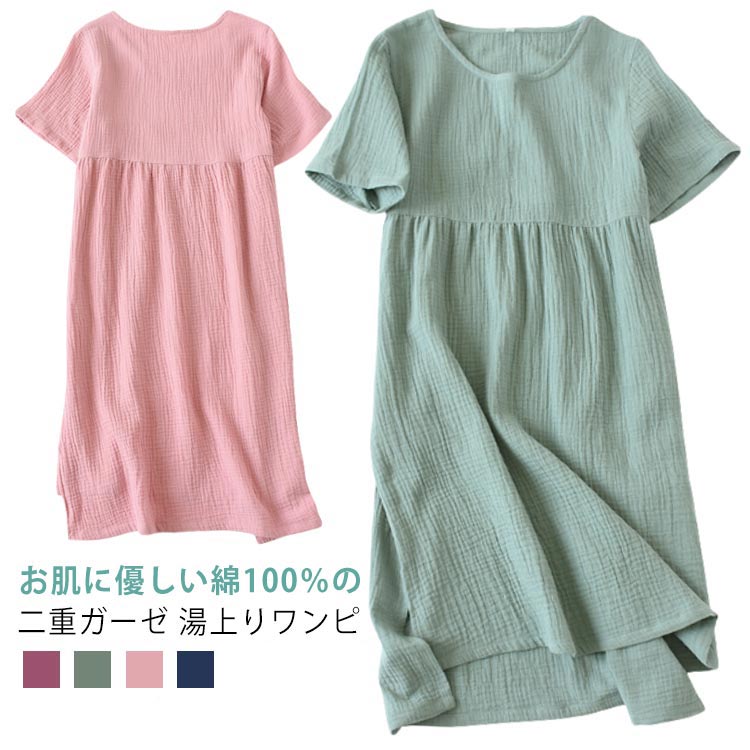 吸湿 速乾性に優れ、通気性も良い2重ガーゼ生地 100%綿 寝間着 タオル ダブルガーゼ 風呂 湯上りワンピース ガーゼ 銭湯 寝巻き パジャマ 柔らかい 温泉 湯上がりワンピース