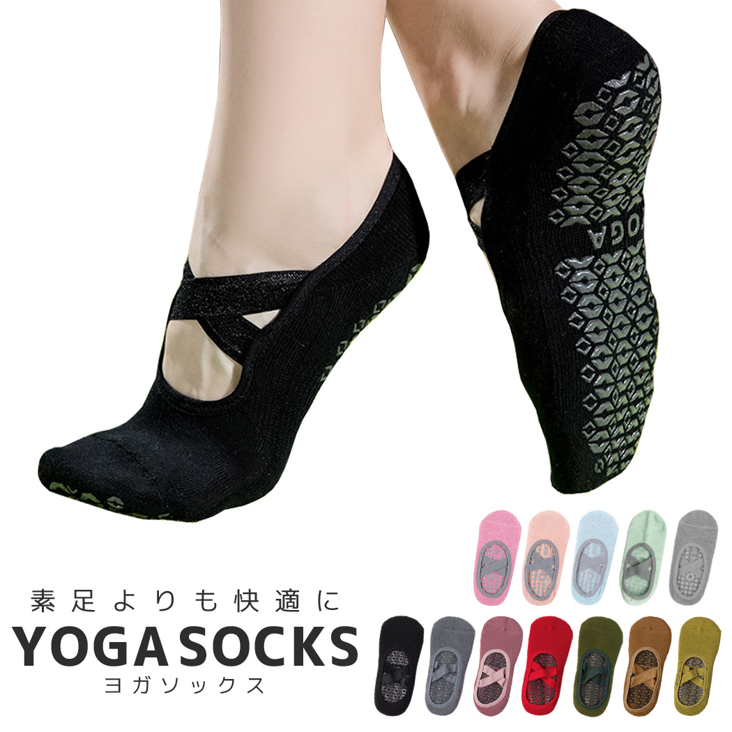 クロスストラップでグッドガール感を 通気性が良くお肌に優しい ヨガソックス 女性用 スポーツソックス 可愛い クロスバンド 綿 ウォーキング ジム 黒 つま先あり パステルカラー