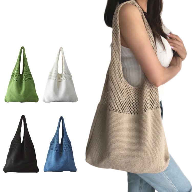 トートバッグ ニットバッグ レディース 夏バッグ 普段使い ハンドメイド 軽量 手編み 編上げバッグ 肩がけ サマーニット