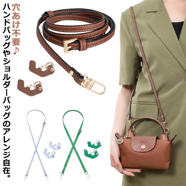 穴あけ不要 ハンドバッグが斜め掛けバッグに変身 尾錠付き 斜め掛け ショルダー ストラップ 付け替え バッグストラップ おしゃれ 肩掛けベルト 3点セット