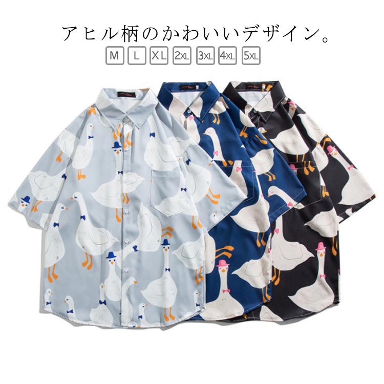 半袖シャツ アロハシャツ メンズ アヒル柄 シャツ 襟付きシャツ かわいい 夏服 カジュアルシャツメンズファッション トップス カジュアルシャツ