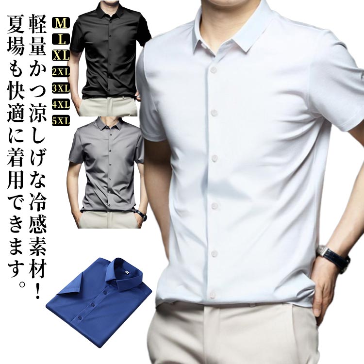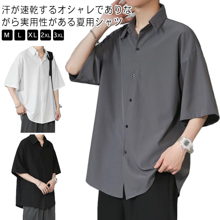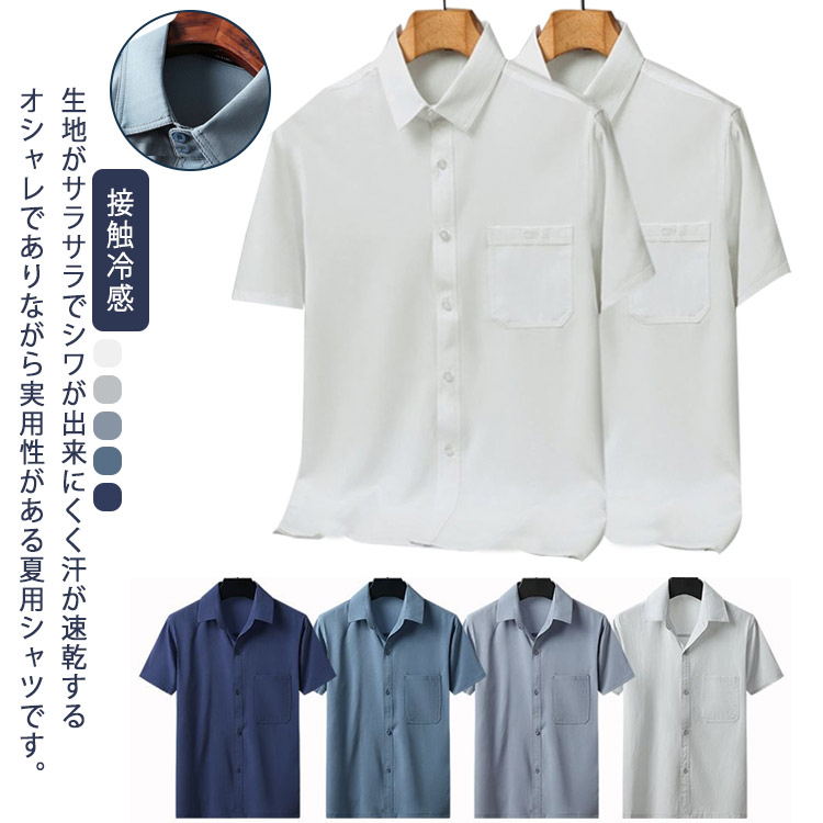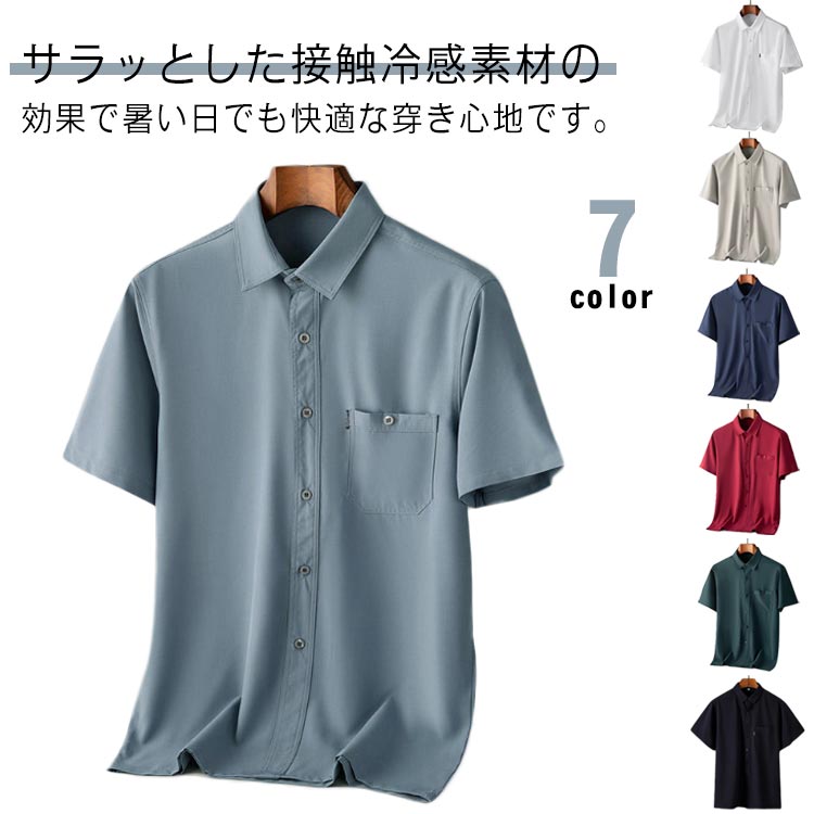 冷感シャツ 黒 半袖 半袖シャツ メンズ メンズ サラサラ ゆったり シャツ グレー 羽織り 冷感 トップス 白 ブラック ホワイト ワークシャツ