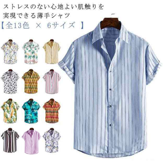 柄シャツ メンズ 柄シャツ シャツ 総柄 アロハシャツ ストライプシャツ 半袖 メンズ 半袖シャツ 柄