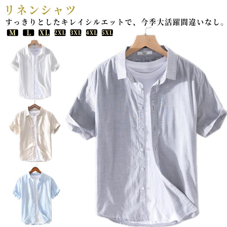 無地 シャツ カジュアルシャツ シャツ 夏服 綿麻 綿麻 無地 麻 リネン 半袖 メンズ メンズシャツ 春服 ビジネス トップス スリム 大きいサイズ カジュアル コットンリネン リネンシャツ