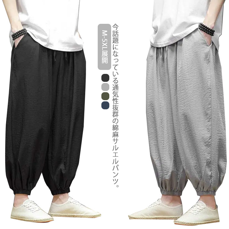 大きいサイズ サルエル メンズ クロップドパンツ M-5XL展開 サルエルパンツ ワイド ゆったり 春 夏
