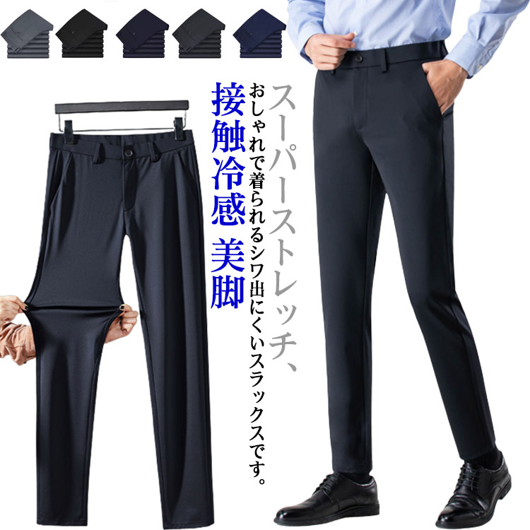 夏 冷感パンツ スラックス アイスシルクパンツ 接触冷感 ビジネスパンツ ノーアイロン ウォッシャブル 薄手 ストレッチパンツ 涼しい メンズ