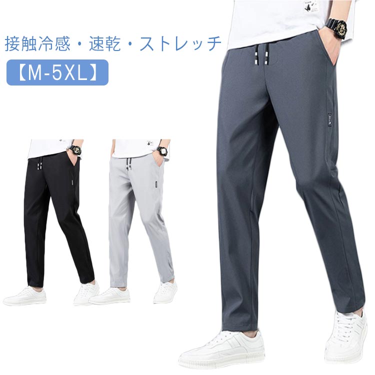 メンズ パンツ カジュアル ズボン ワイド ストレート 通気性 パンツ ひんやり 速乾 吸汗 冷感 パンツ スポーツ パンツ ロング丈 ウエストゴム アイスシルク