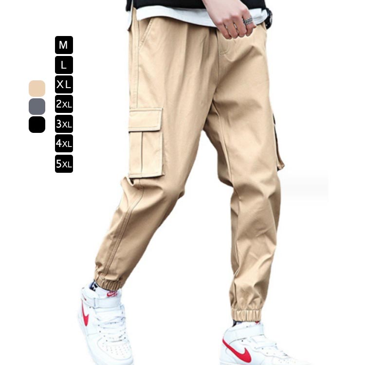 カーゴパンツ メンズ 春秋 夏 ズボン ボトムス ゆったり ロング 太め ゴムウエスト 暖かい 無地 シンプル カジュアル
