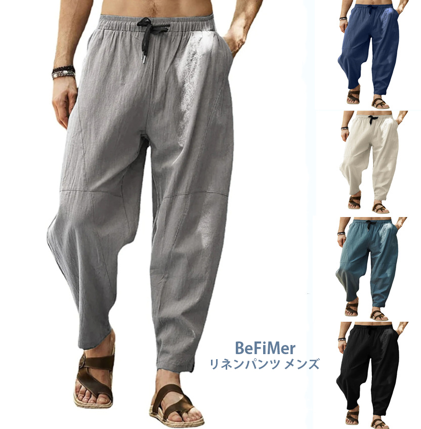おしゃれ リラックスパンツ ファッション 人気 イージーパンツ 民族風 メンズ リネンパンツ 男性用 ボトムス 通勤 通学 旅行 普段着 部屋着 普段着