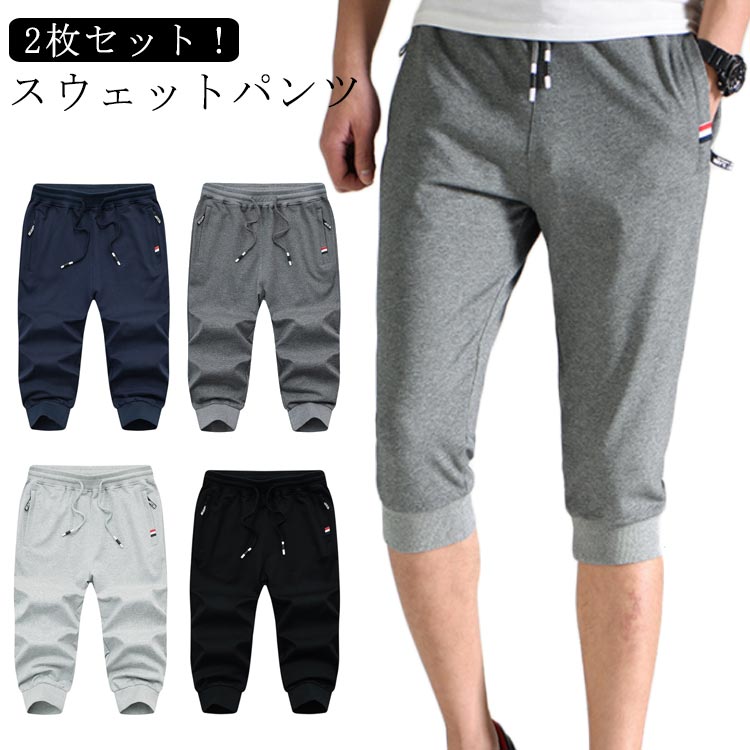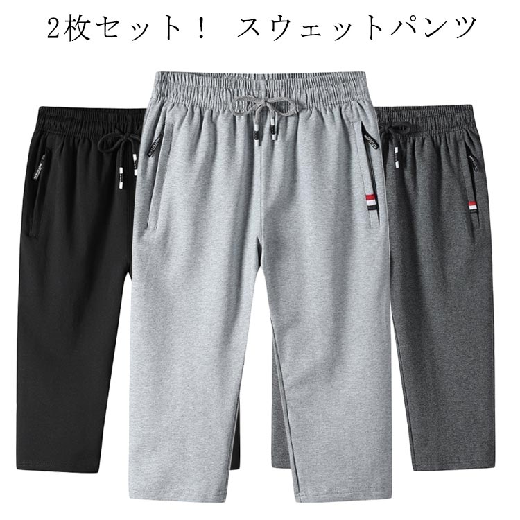 スウェットパンツ コットン スウェットパンツ 綿 クロップドパンツ 黒 白 メンズメンズファッション ズボン パンツ