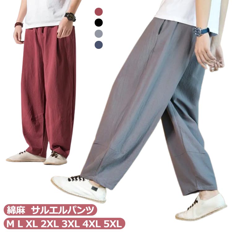 ワイド 綿麻 メンズ サルエルパンツ ワイドパンツ ロングパンツ メンズワイドパンツ 麻 コットンリネン リネン