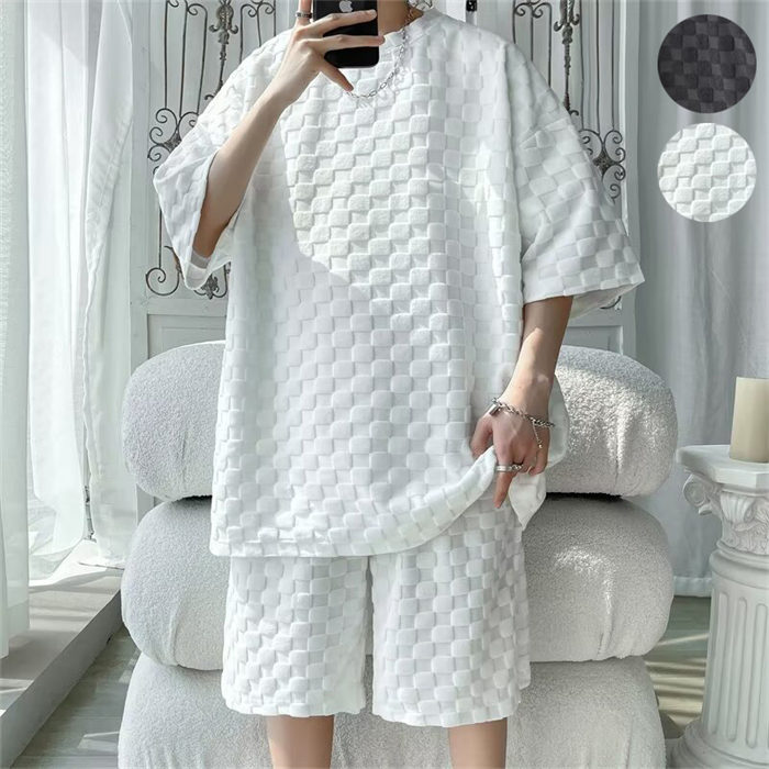 tシャツ 上下セット メンズ チェック柄 夏 夏服 2点セット ファッション おしゃれ 快適 スポーツウエア 運動着 お兄系 お出かけ 学生 通学
