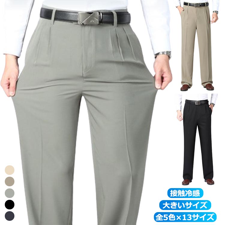 サマースラックス メンズ ビジネス 夏用 ビジネススラックス タック ツータック ストレートパンツ ゆったり ゆとり 薄手 接触冷感