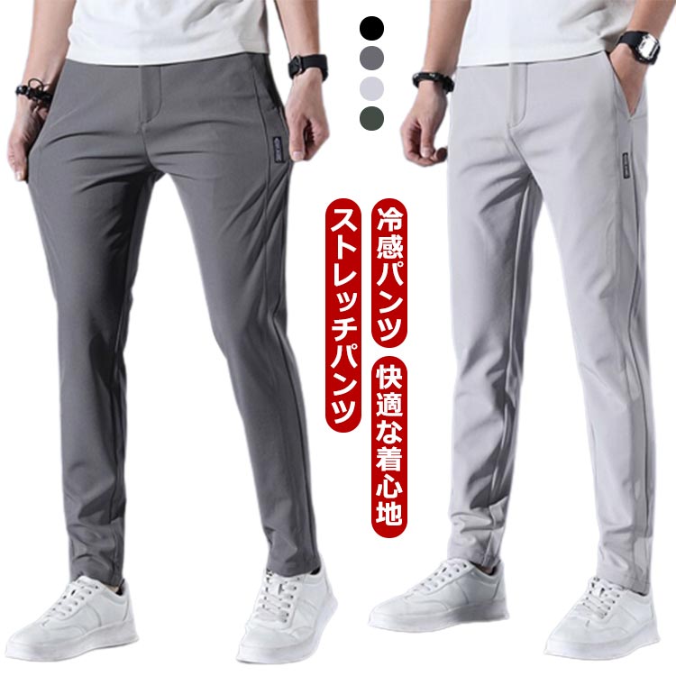 ストレートパンツ ゴルフパンツ 接触冷感パンツ メンズ 冷感 パンツ スリム 大きいサイズ 部屋着 外出着 運動着 イージーパンツ M-3XL