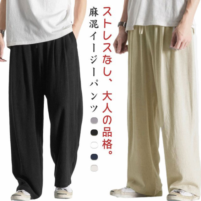 リネンパンツ ワイドパンツ パンツ 麻 メンズ イージーパンツ リラックス マイルウエアメンズファッション ズボン パンツ