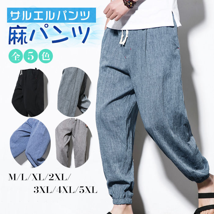 サルエルパンツ メンズ リネンパンツ 夏 麻パンツ 綿麻パンツ ロングパンツ カジュアルパンツ ロングパンツ ワイドパンツ