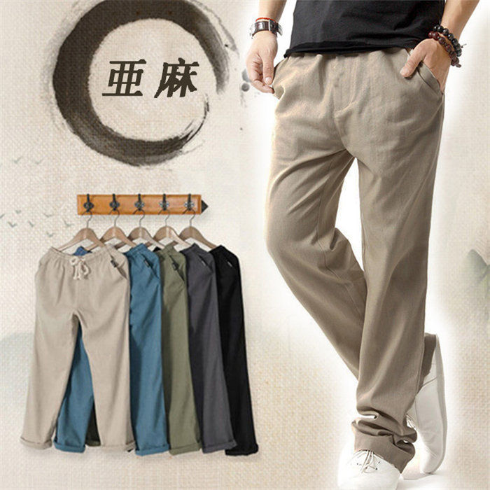 綿麻パンツ メンズ 麻パンツ リネンパンツ チノパン 無地 綿麻 涼しいズボン ロング丈 ストレットパンツ おしゃれ 快適 涼しい長ズボン 普段着