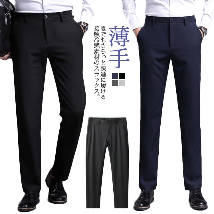 接触冷感 スラックス メンズ ストレッチ スラックス 冷感 吸汗速乾 涼しい ボトムス パンツ 清涼 涼感 超伸縮 薄手 イージーパンツ ビジネス オフィス